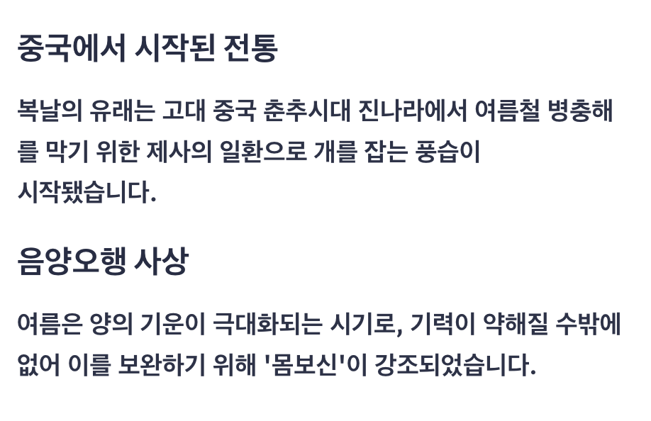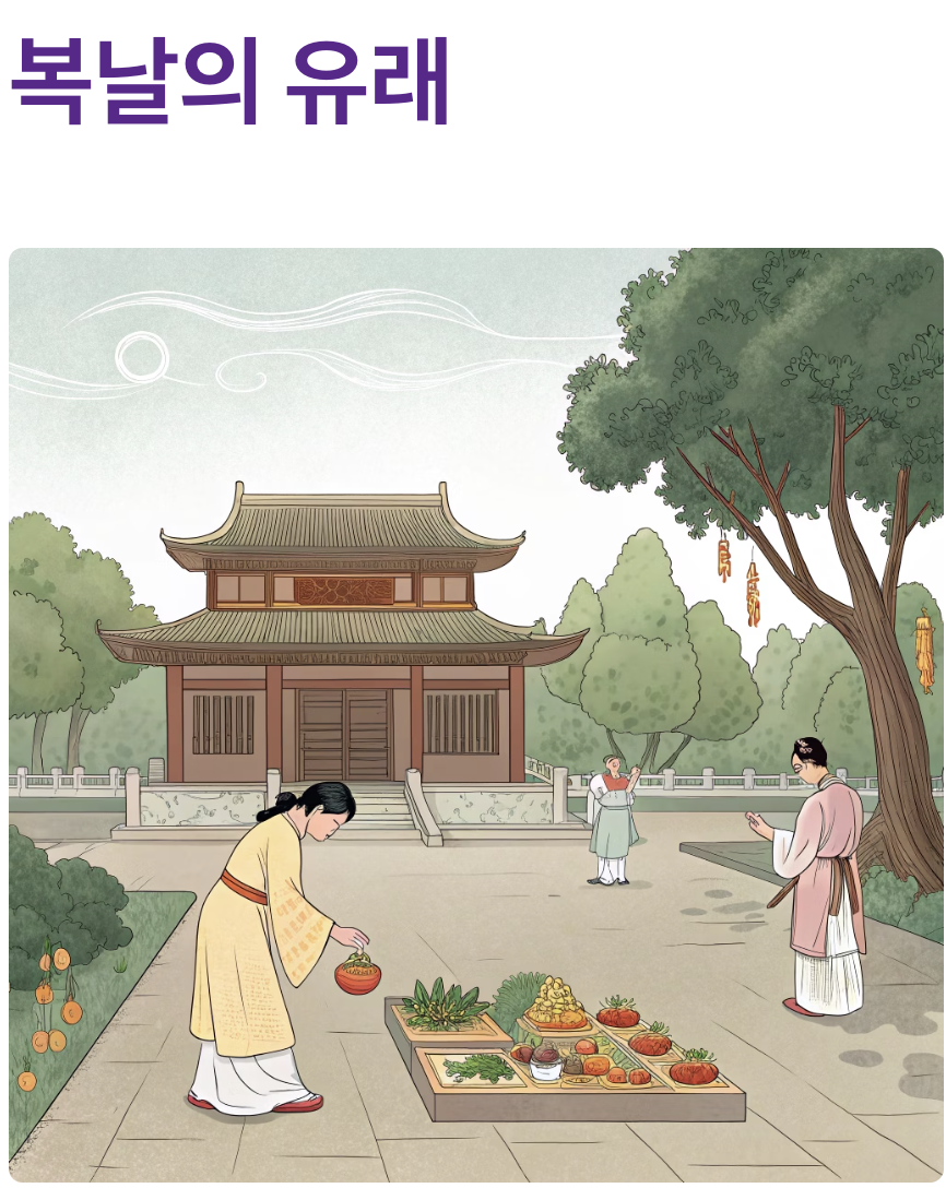 복날의 유래는 고대 중국에서 시작되어 우리나라에 전해졌습니다.