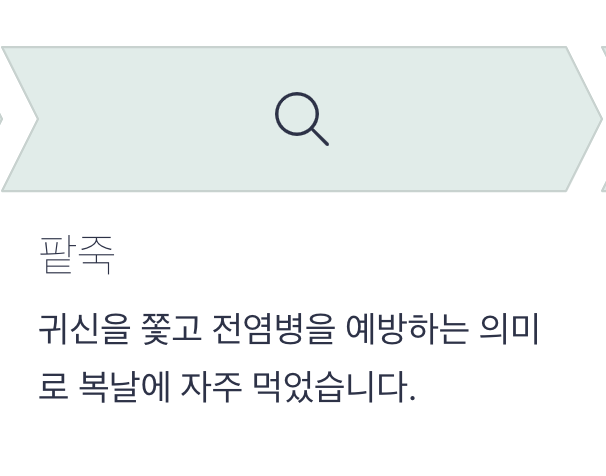 팥죽은 귀신을 쫓고 전염병을 예방하는 의미로, 복날에도 자주 먹었는데요.