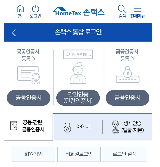 | 본인 인증 수단 | 공동/금융/간편 인증서 중 택1 |