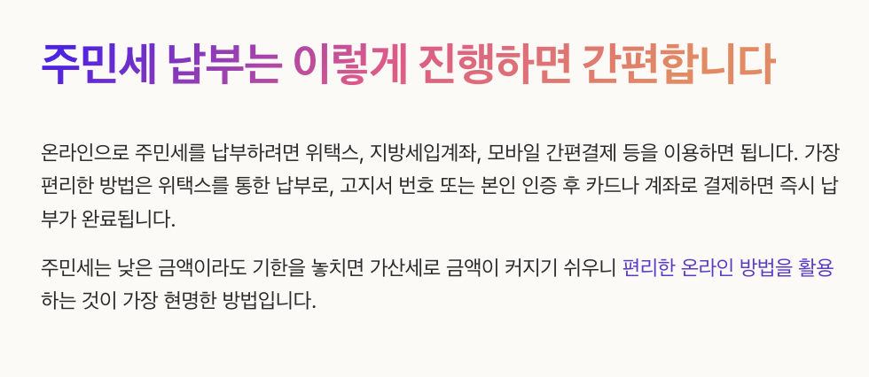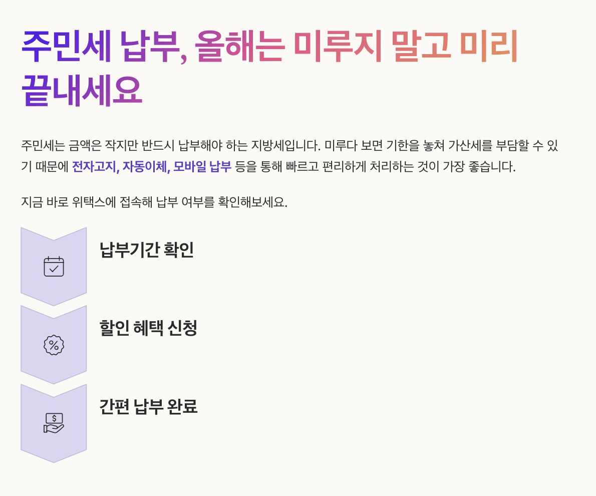 주민세는 금액은 작지만 반드시 납부해야 하는 지방세입니다.