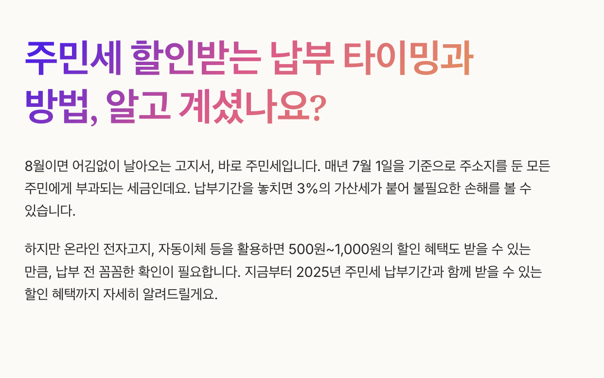 지금부터 2025년 주민세 납부기간과 함께 받을 수 있는 할인 혜택까지 자세히 알려드릴게요.