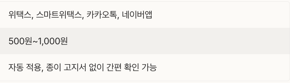 | 간편결제 앱 | 네이버페이, 카카오페이, 스마트위택스 등 사용 가능 |