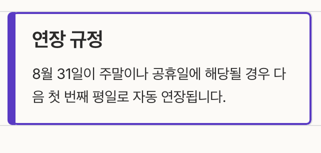 단, 8월 31일이 주말이나 공휴일에 해당될 경우 다음 첫 번째 평일로 자동 연장됩니다.