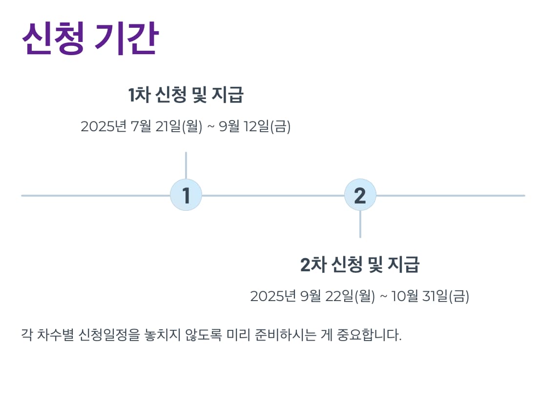 각 차수별 신청일정을 놓치지 않도록 미리 준비하시는 게 중요합니다.