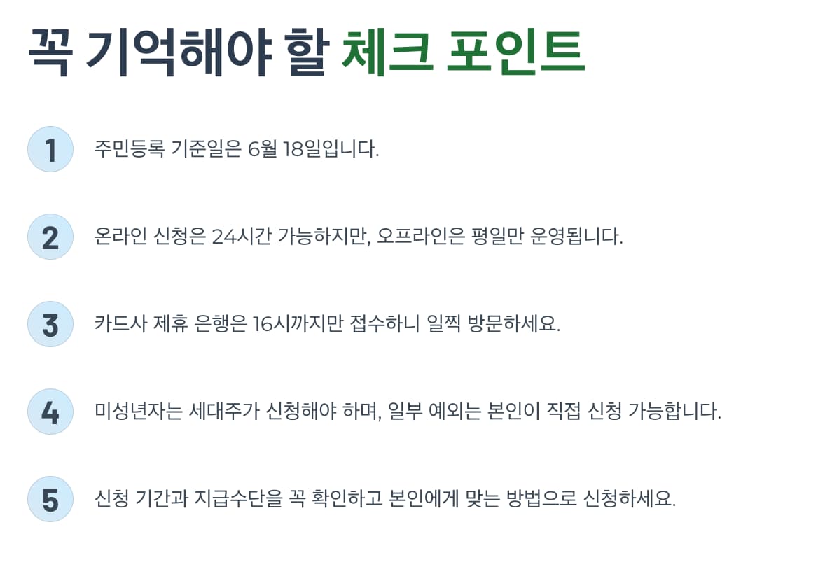 - 신청 기간과 지급수단을 꼭 확인하고 본인에게 맞는 방법으로 신청하세요.