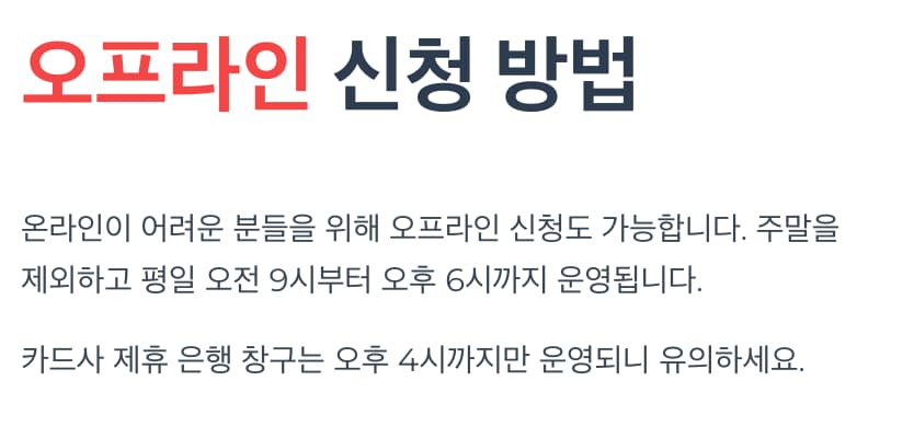 - 온라인 신청은 24시간 가능하지만, 오프라인은 평일만 운영됩니다.