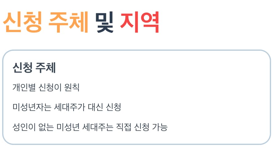 - 미성년자는 세대주가 신청해야 하며, 일부 예외는 본인이 직접 신청 가능합니다.