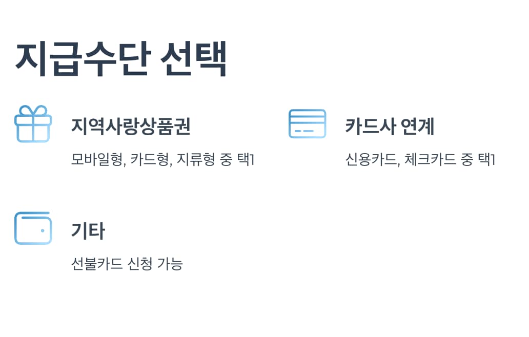 | 지역사랑상품권 | 모바일형, 카드형, 지류형 중 택1 |