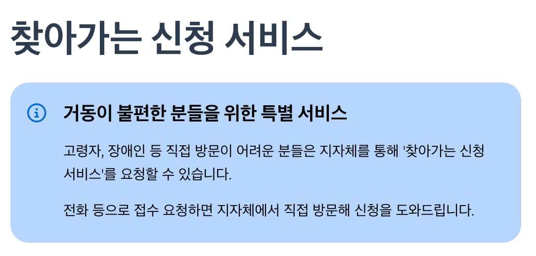 지자체를 통해 '찾아가는 신청 서비스'를 요청할 수 있습니다.