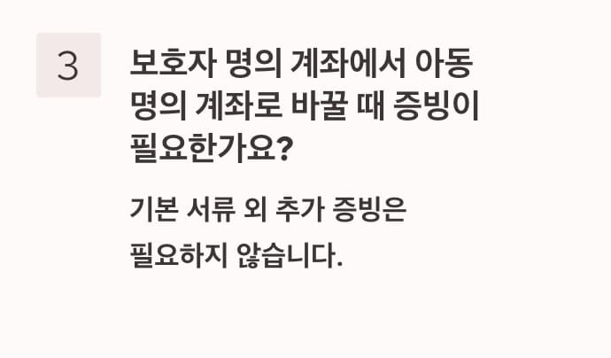 "보호자 명의 계좌에서 아동 명의 계좌로 바꿀 때 증빙이 필요한가요?"