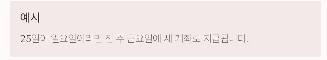 예를 들어, 25일이 일요일이라면 전 주 금요일에 새 계좌로 지급됩니다.