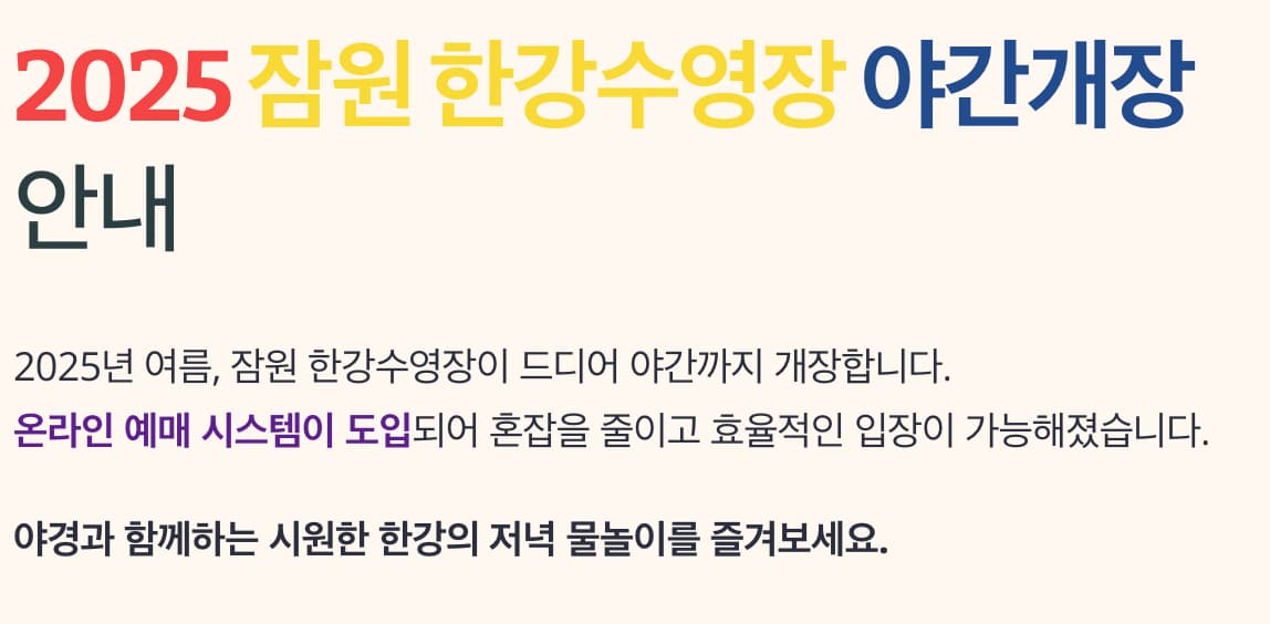 2025년 여름, 서울 시민들의 사랑을 받는 잠원 한강수영장이 드디어 야간까지 개장합니다.