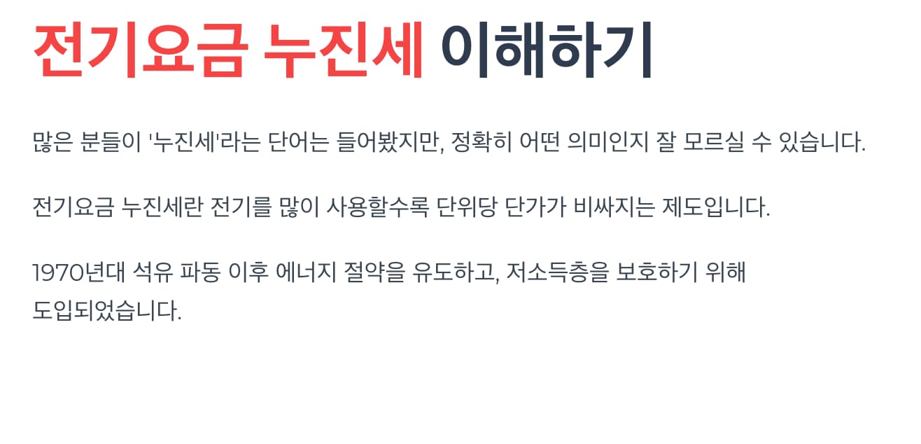 한전 사이버 지점 또는 전기요금 계산기 서비스 링크를 삽입하여 사용량별 요전기 요금 누진세의 대한 정의 그리고 정보금 계산을 돕는 것도 좋습니다.