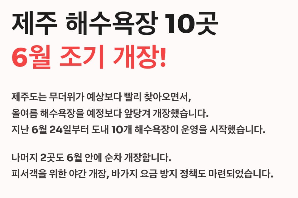 6월 24일, 제주도는 총 10곳의 해수욕장을 개장했습니다.
