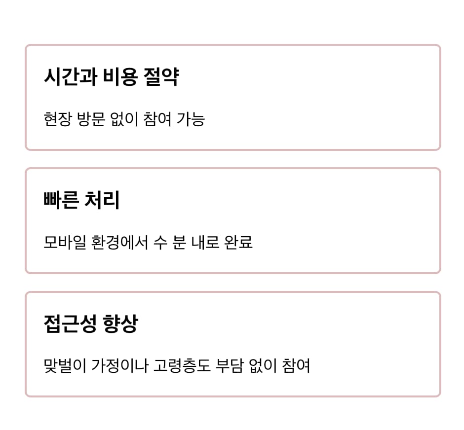 모바일 환경에서도 수 분 내로 완료할 수 있다는 장점이 있습니다.