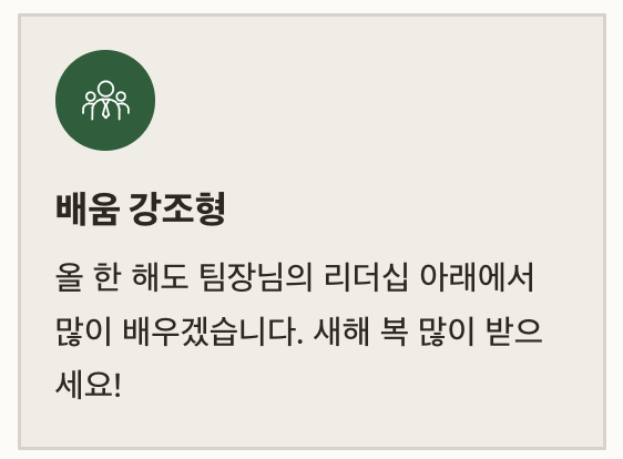 지난해 아낌없는 지도에 감사드립니다. - 올 한 해도 팀장님의 리더십 아래에서 많이 배우겠습니다.