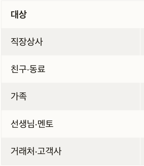 | 직장상사 | 정중하고 격식 있는 문장 | 문자, 이메일 |
