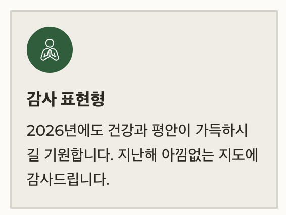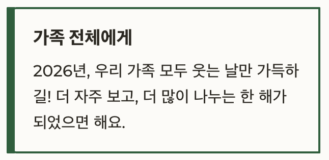- 2026년에도 건강과 평안이 가득하시길 기원합니다.