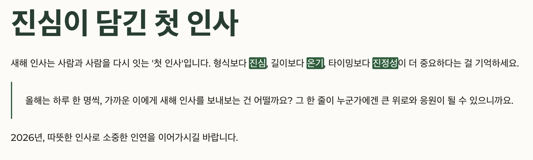 새해 인사는 사람과 사람을 다시 잇는 ‘첫 인사’입니다.