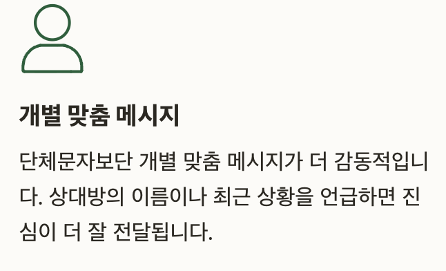 - 단체문자보단, 개별 맞춤 메시지가 더 감동적입니다.