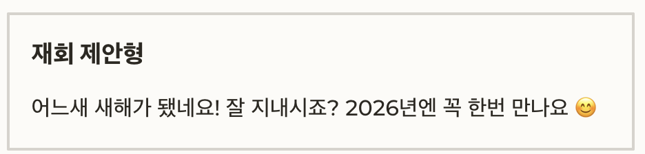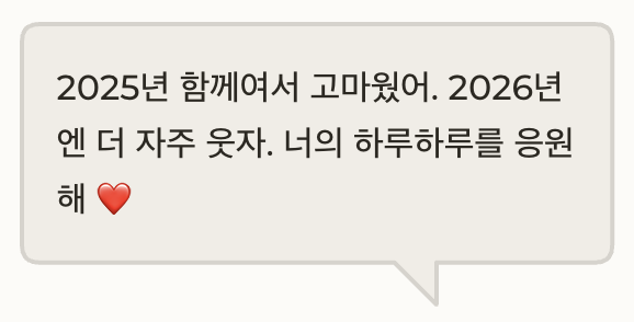 잘 지내시죠? 2026년엔 꼭 한번 만나요 😊 - 2026년 새해 복 많이 받으시고, 좋은 인연 오래 이어가길 바랍니다.