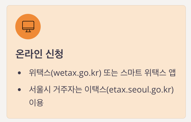 - 서울시 거주자는 이택스(etax.seoul.go.kr) 이용