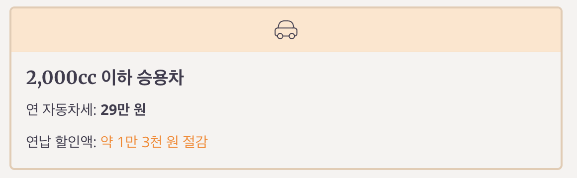 | 2,000cc 이하 승용차 | 29만 원 | 약 1만 3천 원 절감 |