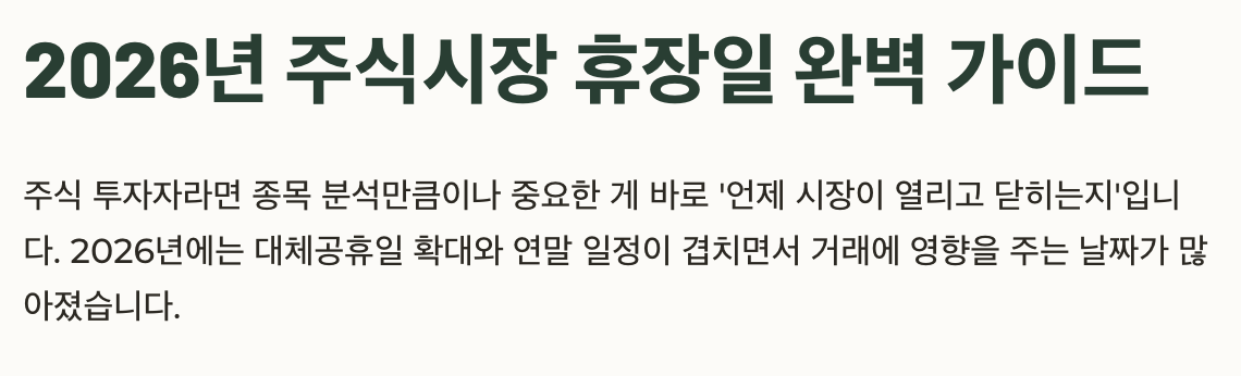 오늘은 2026년 주식시장 휴장일을 총정리하고, 투자자 입장에서 꼭 알아야 할 체크포인트까지 정리해드릴게요.