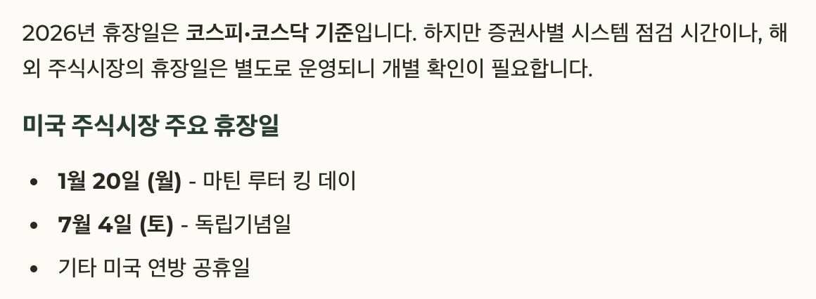 휴장일은 투자 계획 전체에 영향을 미치는 기준점이 됩니다.