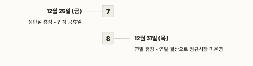 연말 휴장 12월 31일 (목) 연말 결산으로 정규시장 미운영