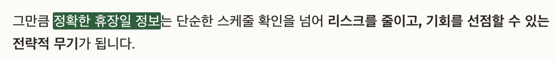 그만큼 정확한 휴장일 정보는 단순한 스케줄 확인을 넘어