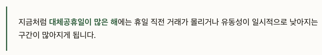단순한 휴장일 정보 그 이상으로 매매 전략 조정이 필요합니다.
