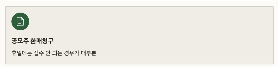 • 공모주 환매청구권 신청 마감일: 휴일에는 접수 안 되는 경우가 대부분