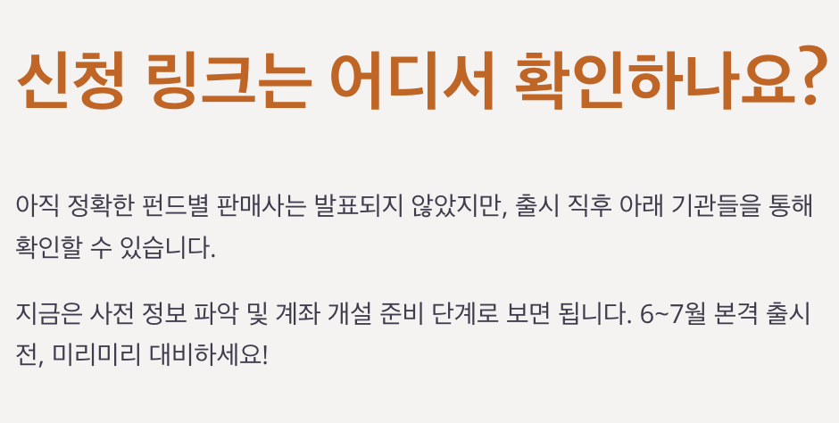 ※ 아직 구체적인 판매사는 발표되지 않았습니다. 추후 금융투자협회 홈페이지나 금융위원회 공지를 통해 확인하세요.