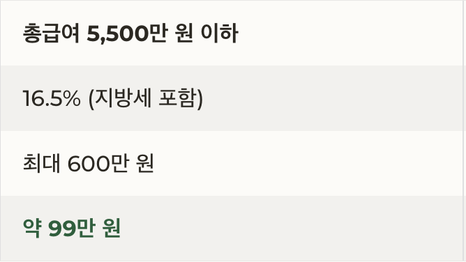 구분총급여 5,500만 원 이하총급여 5,500만 원 초과