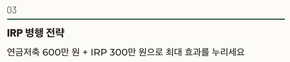 추천 전략은 바로 연금저축 600만 원 + IRP 300만 원 납입!