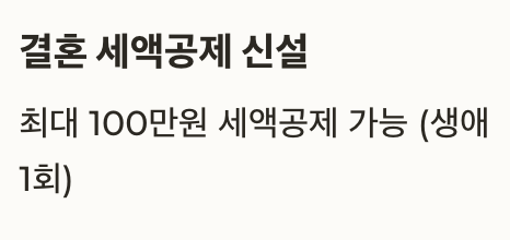 | 결혼 세액공제 신설 | 최대 100만원 세액공제 가능 (생애 1회) |