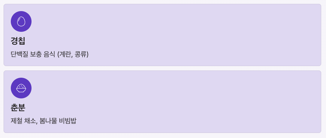 - 경칩: 단백질 보충 음식 (계란, 콩류)