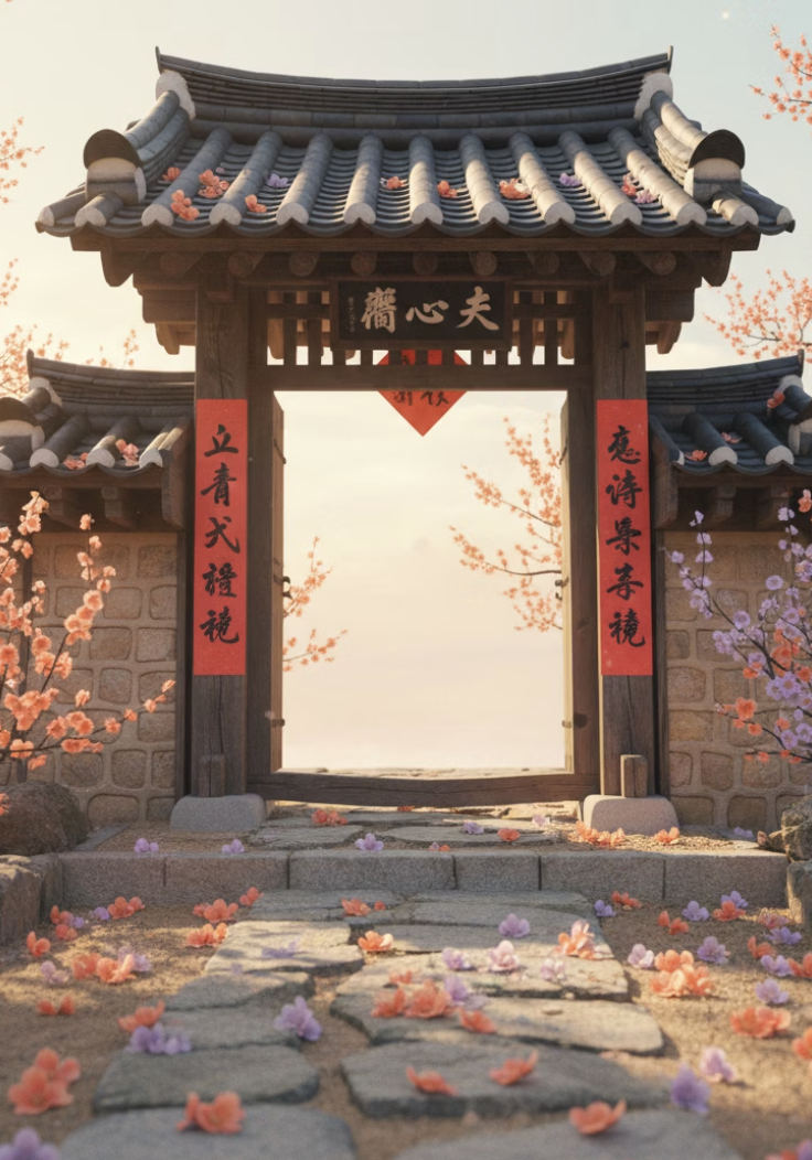 - “입춘대길(立春大吉)” 같은 문구를 써 붙이는 풍습