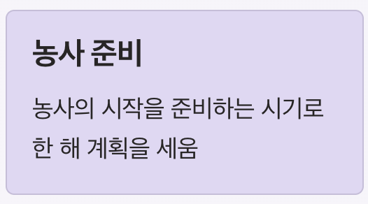 - 농사 준비가 본격화되는 시기