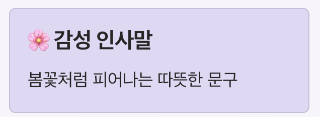 | 친구 | 봄바람처럼 기분 좋은 일들만 가득한 3월 보내! | 편안하고 친근한 느낌 |