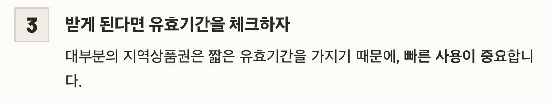 대부분의 지역상품권은 짧은 유효기간을 가지기 때문에, 빠른 사용이 중요합니다.