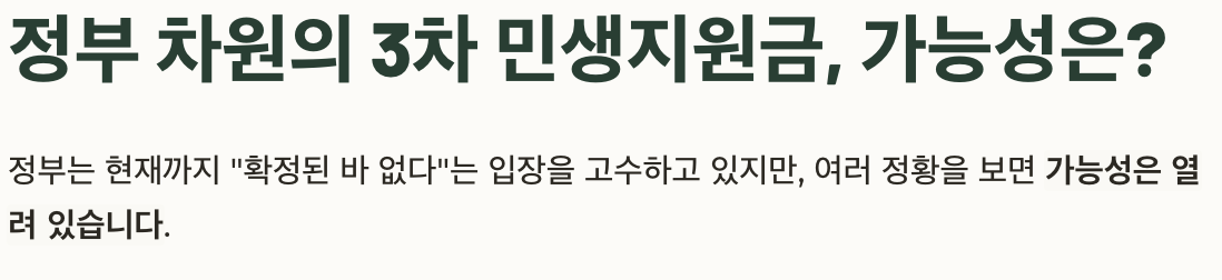 3차 민생지원금은 현재 ‘가능성’ 단계이지만, 전국적인 논의 분위기와 지방정부의 선제적 움직임을 보면