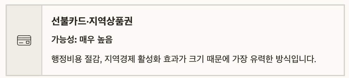 | 지급 방식(예상) | 지역상품권, 선불카드, 모바일 쿠폰 가능성 높음 |