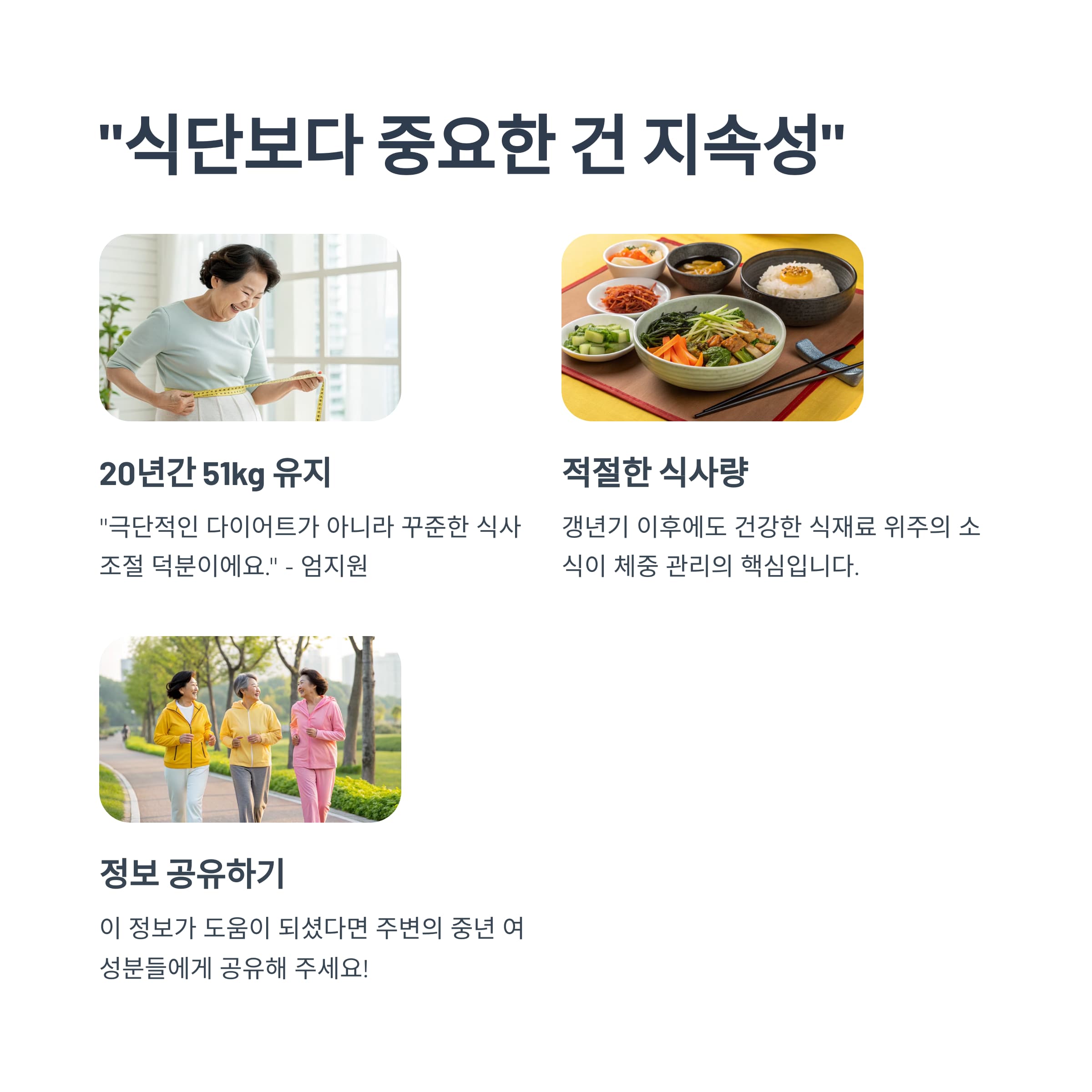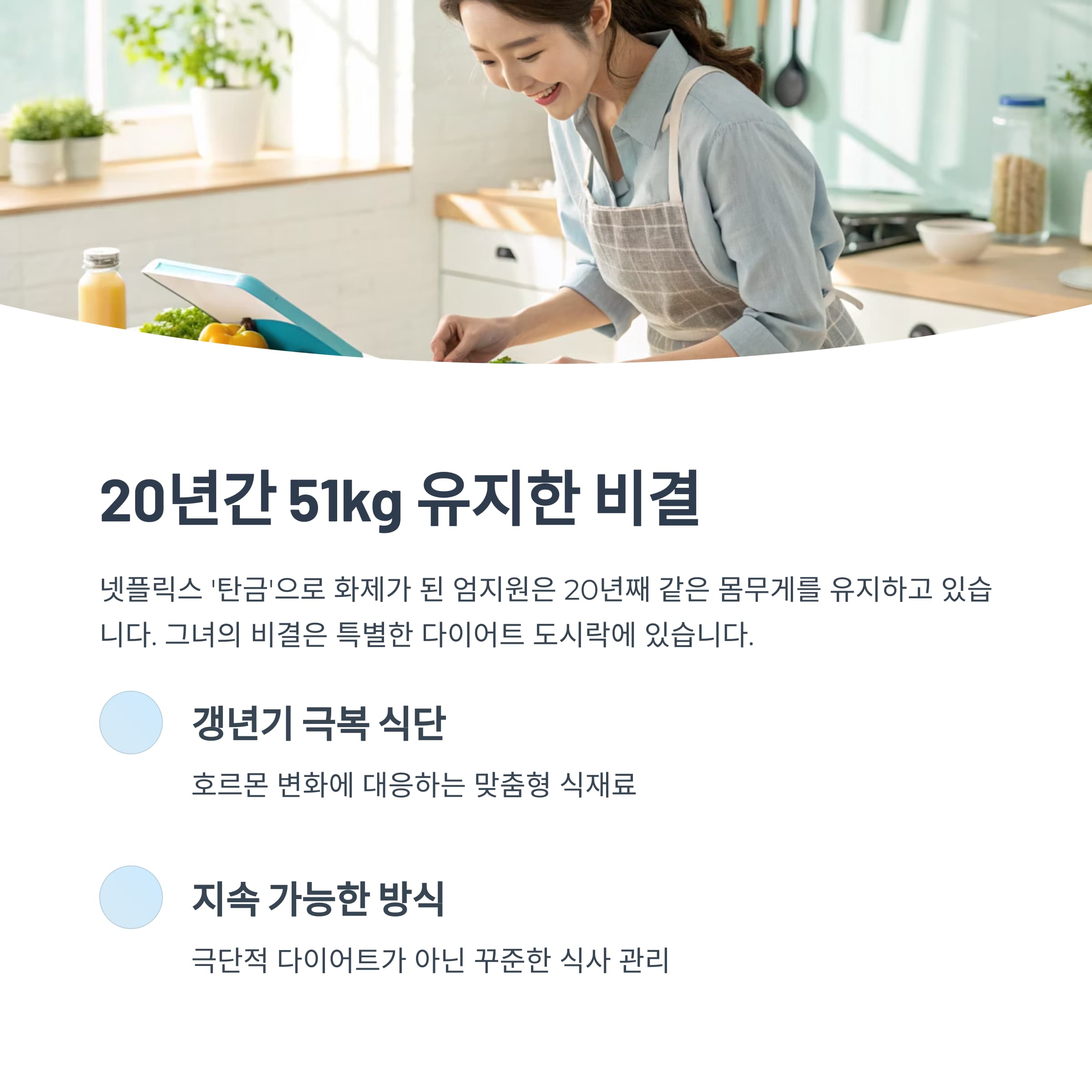 "20년 동안 51kg을 유지할 수 있었던 건, 극단적인 다이어트가 아니라 꾸준한 식사 조절 덕분이에요."