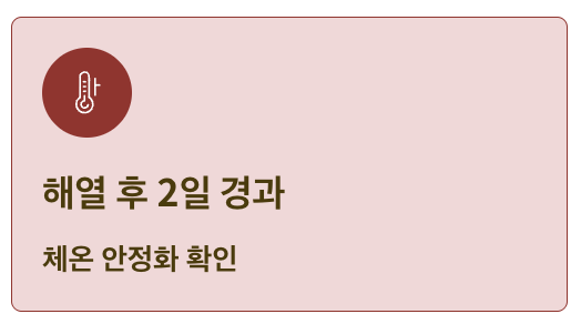 해열제 없이 열이 정상 체온으로 돌아온 뒤 최소 24시간이 지나야 격리 해제가 가능합니다. 체온이 안정적으로 유지되는 시간을 확인하는 과정이 포함되어야 감염 위험을 낮출 수 있어요.