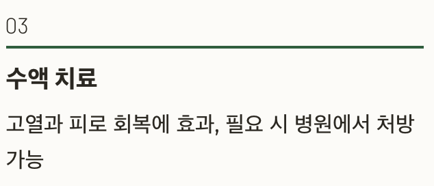 수액 치료 고열과 피로 회복에 효과, 필요 시 병원에서 처방 가능