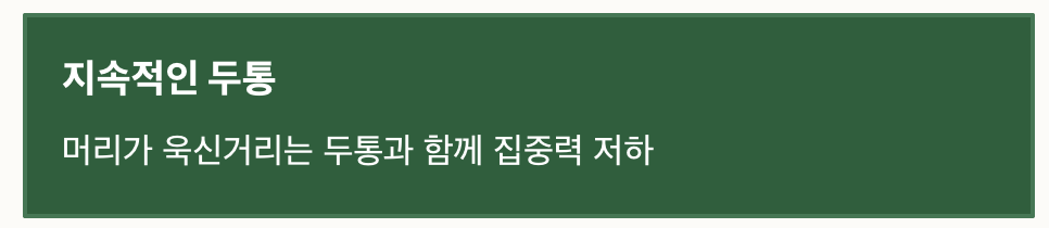 지속적인 두통 머리가 욱신거리는 두통과 함께 집중력 저하
