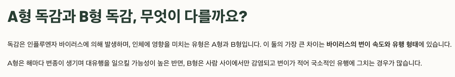 | 바이러스 유형 | H1N1, H3N2 등 다양한 아형 | Victoria, Yamagata 계통 |