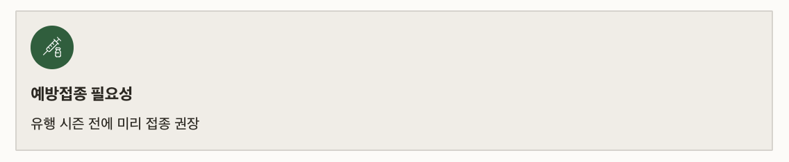 | 예방접종 필요성 | 유행 시즌 전에 미리 접종 권장 |